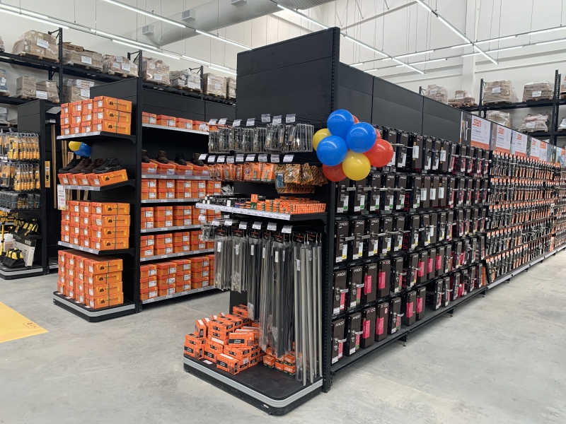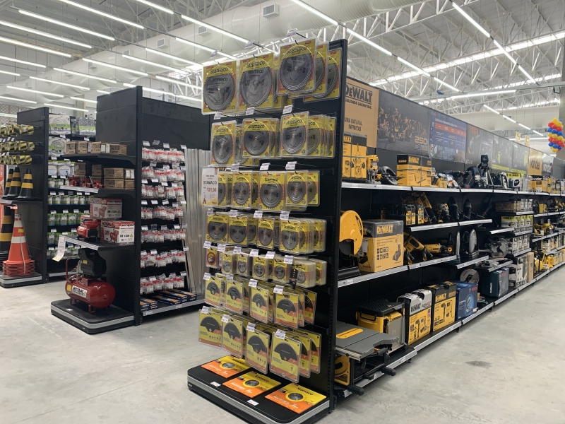 No setor de ferramentas um verdadeiro show para os olhos dos clientes. A organização para a apresentação das peças garantiu uma harmonia incrível e espaço para uma enorme variedade de mercadorias. As Gôndolas têm grande resistência para a carga de ferramentas pesadas.